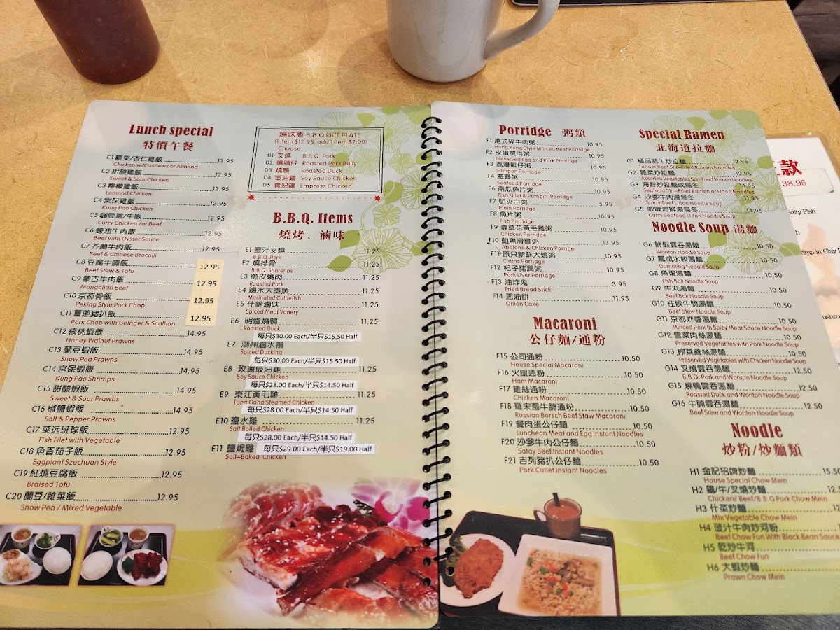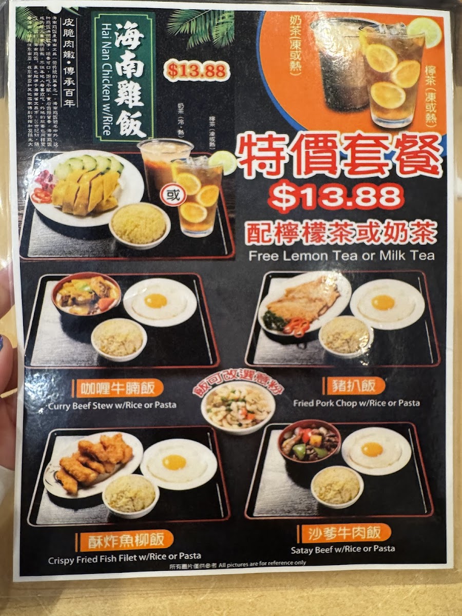 For a comforting and aromatic meal, you can’t miss the Hainan Chicken Over Rice (海南鷄飯), also available at $13.88. The chicken, tender and juicy, paired with fragrant rice, is a classic that never disappoints. The BBQ Pork Over Rice (叉燒飯) is another favorite at $9.50, showcasing perfectly caramelized pork that melts in your mouth.